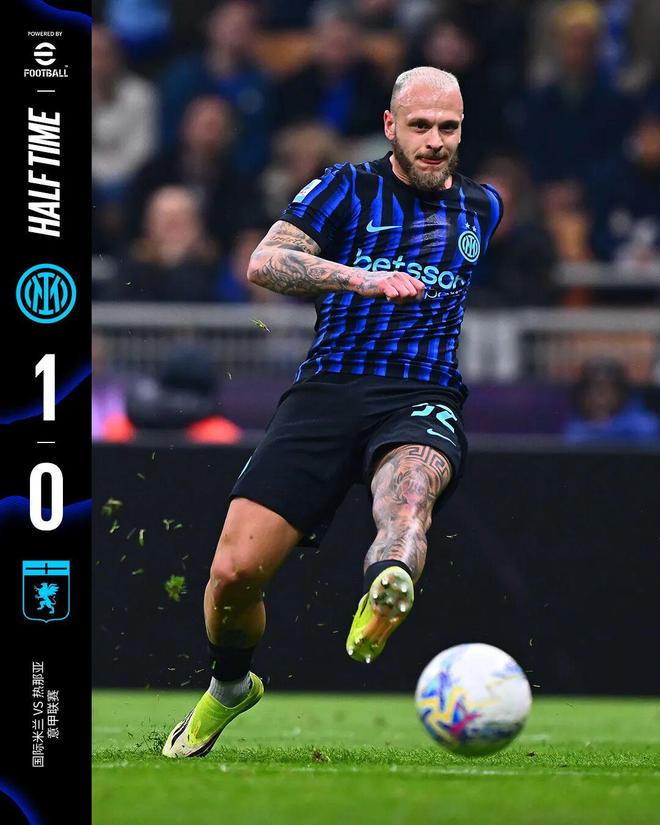 上半場比賽結束,我們暫時1比0領先於熱那亞。